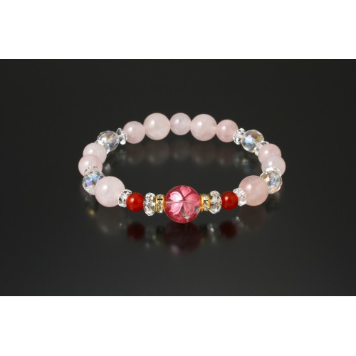 [日本製造] 玫瑰石英櫻花水晶手鏈